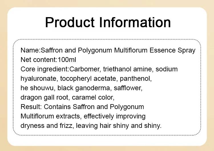 Saffron Hair Essence Spray with Polygonum Multiflorum - Nourish and Strengthen Hair Root, Prevent Gray Hair, Non-Frizzy - Herbal Extracts Hair Serum for All Hair Types and Textures